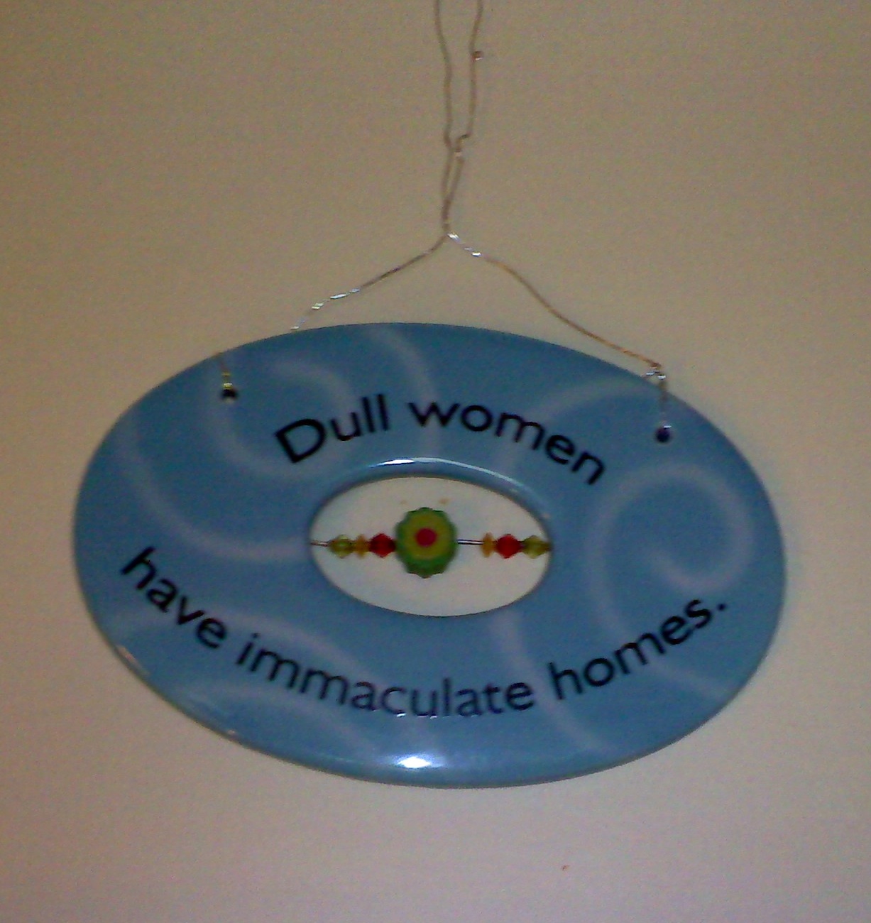 Which is why I’m giving myself permission to stop cleaning right now and go out to dinner with him. Clean end tables are overrated. I know this because I have this little reminder in my kitchen.
