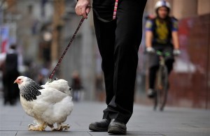 It turns out that walking a chicken on a leash is not only not weird, it’s commonplace around here!