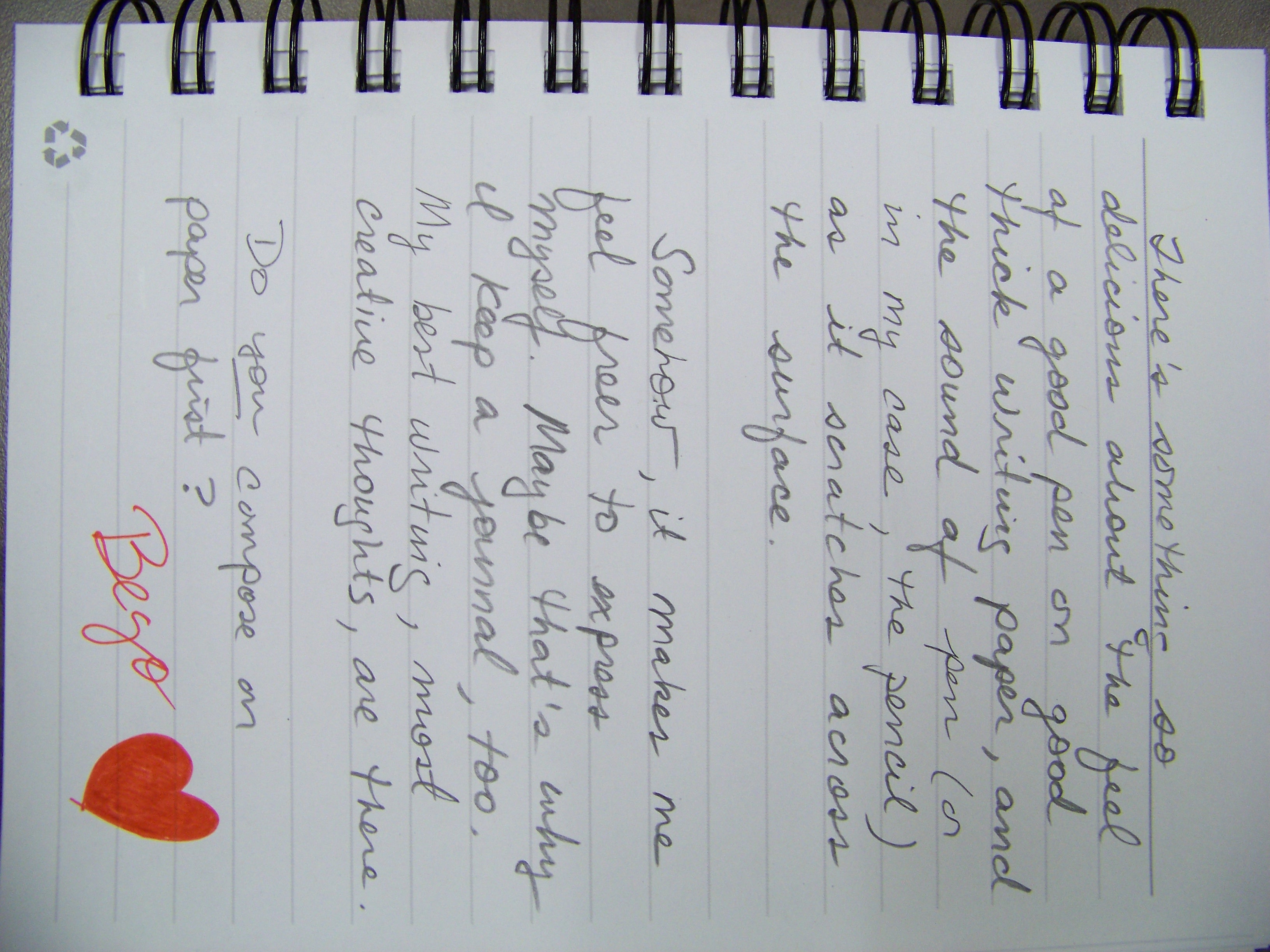 Your handwriting is not so different from mine! I am used to composing at the keyboard after many years at it–but there are some things (like my calendar, and most brainstorming) that must be done on paper. No matter what fancy-schmancy electronic device comes my way, I’m unable to give myself wholeheartedly to it.