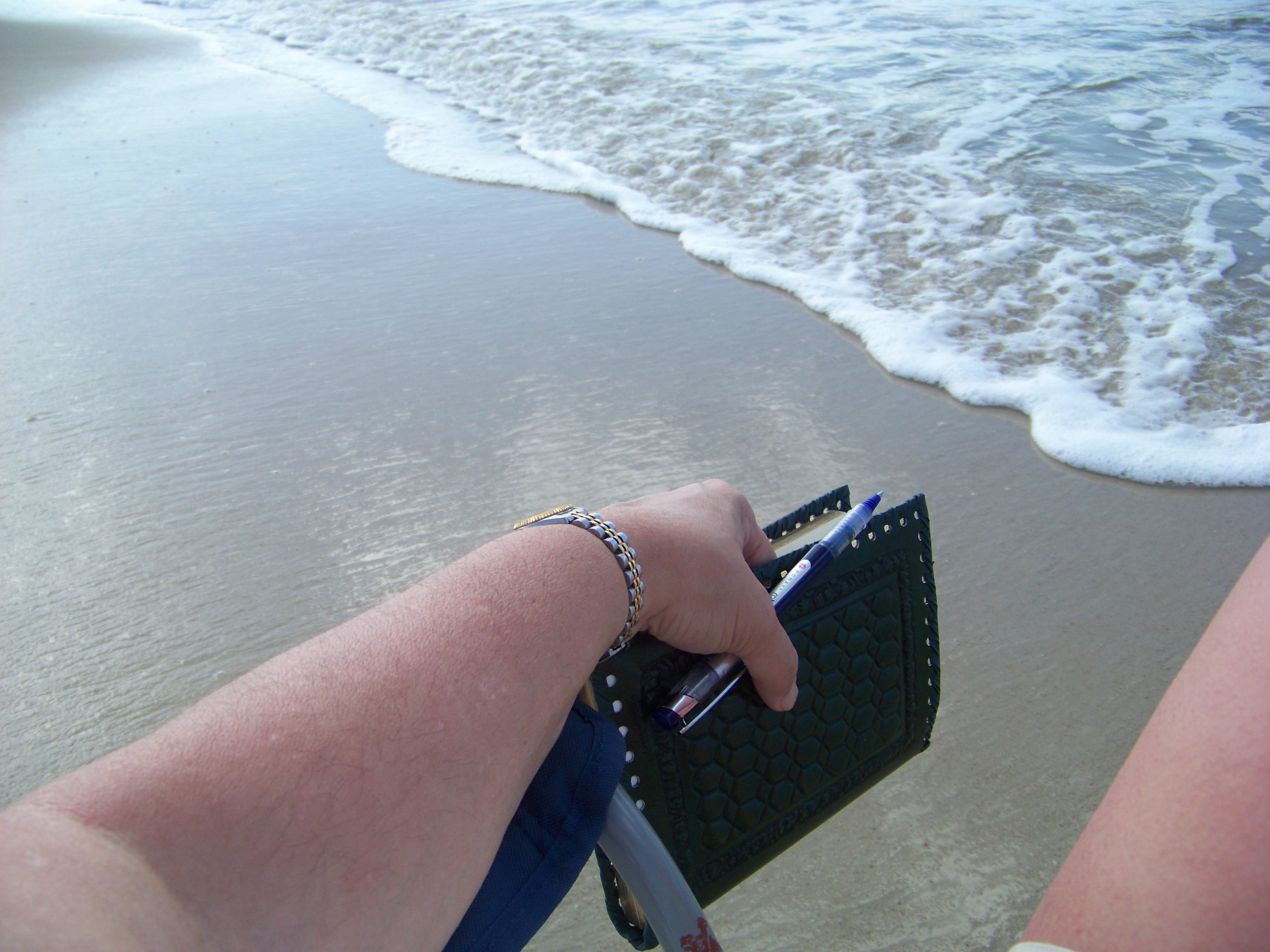 I did get some reading done, but it’s a shame I didn’t read more. I also got some writing done. In fact, quite a bit went into my journal in spite of the occasional splash that sent my arms up protecting the book from the water. I must have looked like a crazy woman randomly calling “touchdown” when a big wave hit. It’s a good thing the beach was empty although the seagulls started looking at me suspiciously after a while.