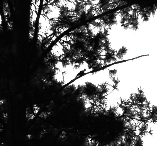 I looked up, trying to scan the tree tops for the offending branch getting ready to annihilate me, when I caught sight of the culprit.