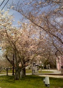 When the cherry blossoms bloom around these parts, we have to run out and enjoy them immediately. They just suddenly bloom, everything is pink and beautiful, and the winds of spring invariably blow and they’re gone. Like pink snow, the petals fall and swirl around before disappearing.